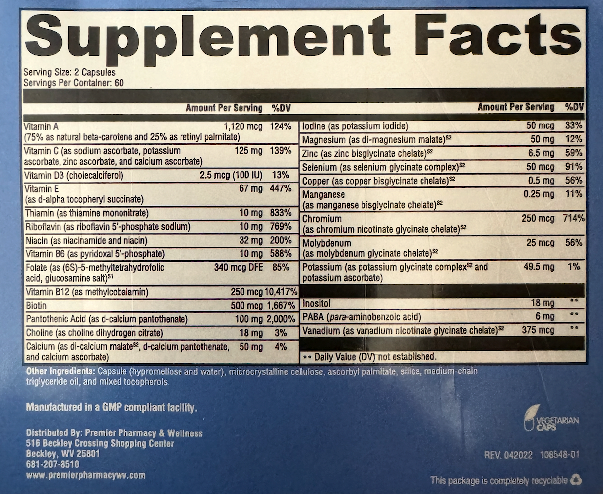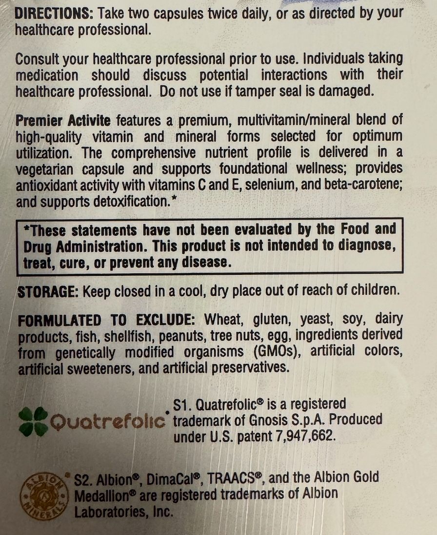 Premier Activite is your go-to multivitamin and mineral blend, crafted to support energy, immunity, and daily vitality. With 120 vegetarian capsules per bottle, it's the perfect foundation for your wellness routine.
